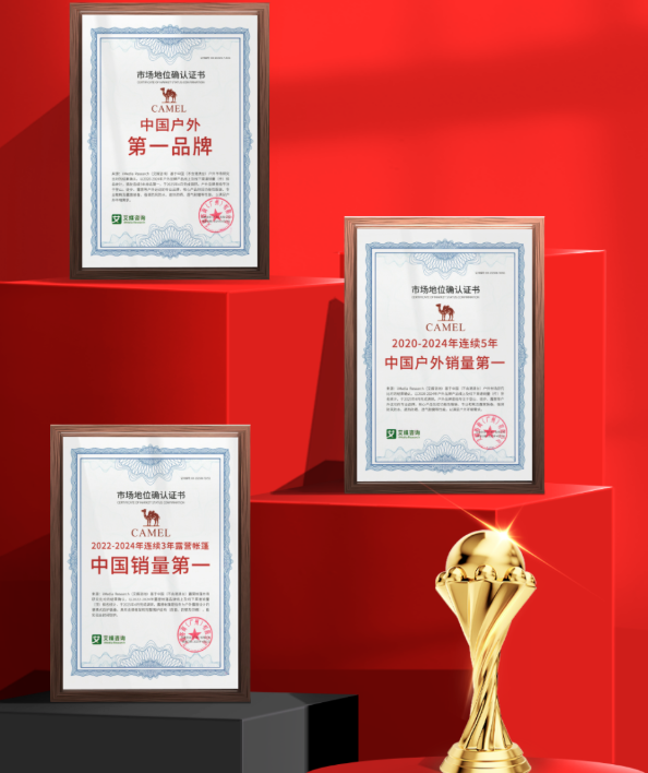 2025年4月,駱駝獲全球領(lǐng)先的新經(jīng)濟(jì)產(chǎn)業(yè)第三方數(shù)據(jù)挖掘和分析機(jī)構(gòu)iiMedia Research(艾媒咨詢)授予的“2020-2024年連續(xù)5年中國戶外銷量第一”“2022-2024年連續(xù)3年露營帳篷中國銷量第一”“中國戶外第一品牌”三項(xiàng)市場地位確認(rèn)。