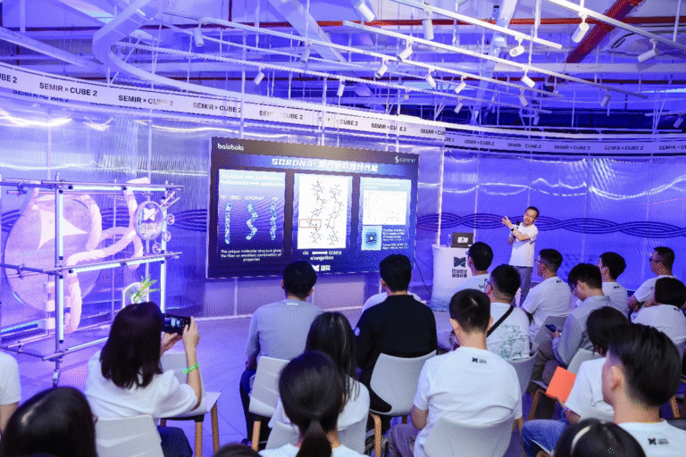 2025年6月30日下午13:30,由巴拉巴拉供應(yīng)鏈發(fā)起的“巴拉巴拉超級(jí)纖維材料科技IP發(fā)布會(huì)與功能體驗(yàn)”在上海森馬園區(qū)正式啟動(dòng)。極具科技感的未來神秘空間內(nèi),巴拉巴拉品牌總經(jīng)理周俊武、巴拉巴拉商品資深總監(jiān)孫婷婷、巴拉巴拉市場(chǎng)營(yíng)銷總監(jiān)傅奕斐、華峰瑞訊生物材料有限公司全球副總裁周進(jìn)、華峰瑞訊生物材料有限公司大中華區(qū)商務(wù)總經(jīng)理周海東、華峰瑞訊生物材料有限公司技術(shù)總監(jiān)胡騰蛟博士、森馬服飾供應(yīng)鏈發(fā)展中心總經(jīng)理金克軍、森馬服飾供應(yīng)鏈發(fā)展中心材料管理高級(jí)總監(jiān)金萍、巴拉巴拉供應(yīng)鏈高級(jí)總監(jiān)劉長(zhǎng)伴等領(lǐng)導(dǎo)嘉賓以及多家媒體朋友齊聚一堂,共同見證巴拉巴拉超級(jí)纖維的重磅發(fā)布。