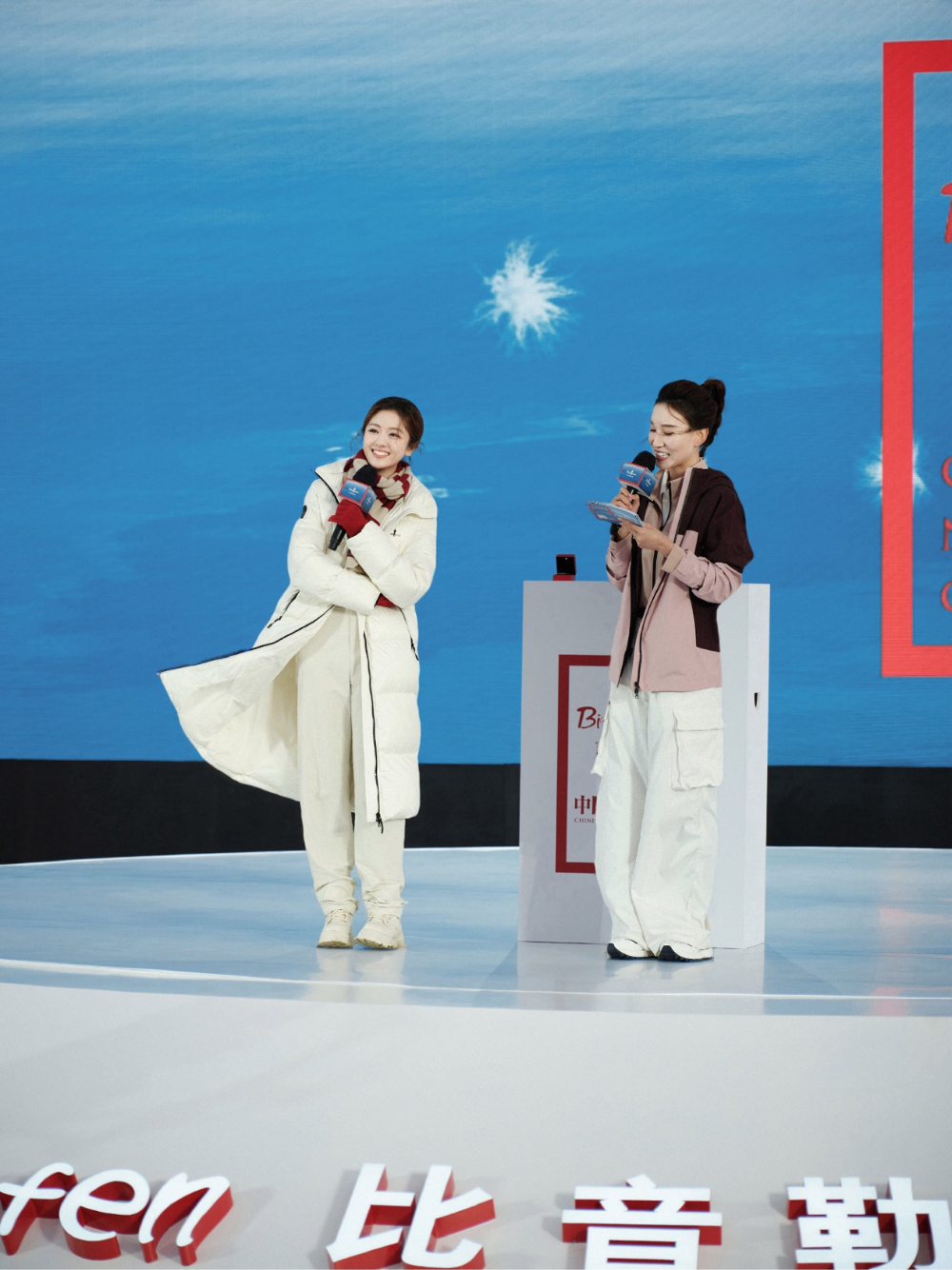 發(fā)布會現(xiàn)場,比音勒芬品牌大使胡一天、李蘭迪驚喜現(xiàn)身賽里木湖,與《時尚芭莎》等一線時尚媒體共同見證新疆鵝絨的卓越品質(zhì)。