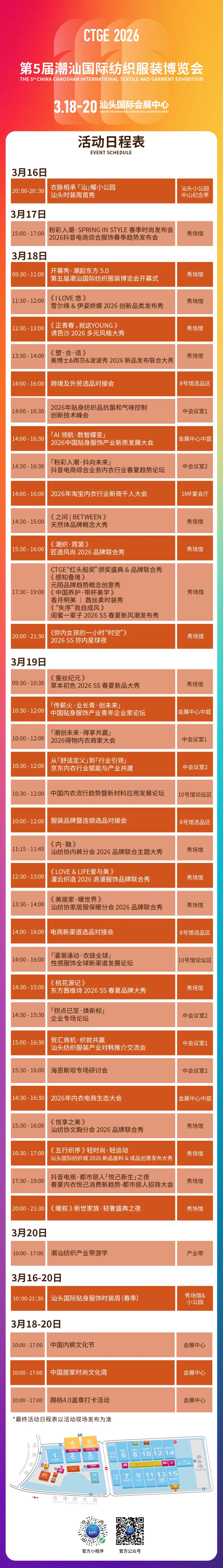 最全展會活動日程表公布,長按收藏!3月18-20日,行業(yè)前沿、無限商機,我們汕頭國際會展中心見!