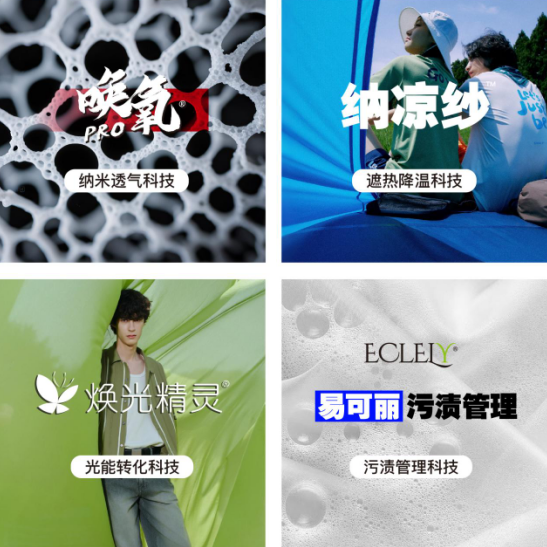 其三,易可麗污漬管理系列,突破傳統(tǒng)面料清潔痛點,賦予面料輕松去污的核心能力,兼顧實用性與便捷性,適配羽絨服飾、戶外裝備等多場景需求,而隨著96%的用戶會在日常場景穿著具備戶外功能的服飾,這類全場景適配面料的市場需求正持續(xù)攀升。