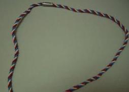 (4) 繩子交接處用鐵圈包起來,鐵圈的長度為2CM,鐵圈的厚度為0.7MM,每個鐵圈的外直徑是4.5MM 。