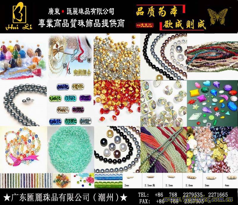專業(yè)生產(chǎn).銷(xiāo)售各種進(jìn)口,國(guó)產(chǎn)工藝玻璃珠、珠管、PVC.PET珠片材料(散片、連線片、電腦盤(pán)片)、 塑膠珠(仿珍珠、雙色珠、花珠、金拉絲珠、皺紋珠、仿古銀珠)、尿素珠(環(huán)保)、ABS珠、 壓克力鉆、十字縫鉆、壓克力珠、木珠、玻璃鉆石(水鉆)、爪鉆(尖底、平底)、鉆鏈、中孔鉆、燙鉆、 天然翠石等工藝珠繡輔料.飾品, 本產(chǎn)品廣泛適用于服裝,婚紗,手袋,工藝鞋,燈飾,工藝品,圣誕品上的裝飾用料. 產(chǎn)地有,日本產(chǎn)、奧地利產(chǎn)、捷克產(chǎn)、韓國(guó)產(chǎn)、臺(tái)灣產(chǎn)、自產(chǎn)等依客戶所需供貨。 產(chǎn)品規(guī)格: 圓珠,角珠,珠管等一般直徑在1.5mm-5mm,中間有小孔,供穿紗線 玻璃彩珠:6/O,8/O,11/O.12/O.15/O…… 玻璃珠管:1",2",3",4",5"...... 玻璃角珠:6/O,8/O,11/O.... 塑料珠直徑:2mm,2.5mm,3mm,4mm,5mm,6mm,8mm,12mm.... 珠片(亮片)直徑:2mm.3mm,4mm,6mm,8mm,12mm...30mm 等各形狀,各規(guī)格,,品種齊全,質(zhì)量保證. 公司盡力做到與{"珠"}有關(guān)的全方位服務(wù),滿足各大客戶的需求, 熱誠(chéng)歡迎全國(guó)各地用料廠家,單位來(lái)樣,來(lái)電查詢,訂購(gòu),并能大量供貨. 愿與全國(guó)各地廠家,單位,真誠(chéng)合作,共同發(fā)展. ★業(yè)界唯一率先推出環(huán)保玻璃珠,珠片(PVC,PET)等珠飾品, 產(chǎn)品符合歐盟ROHS指令2002/95/EC及其補(bǔ)充指令2005/618/EC3的要求★ 定貨時(shí)請(qǐng)說(shuō)明需不需要環(huán)保料,(注:所發(fā)布圖片及文字未經(jīng)匯麗公司明確書(shū)面授權(quán)許可任何單位或個(gè)人 不得以任何方式復(fù)制、傳載,謝謝合作!最終版權(quán)、解釋權(quán)歸匯麗珠品有限公司所有?。?