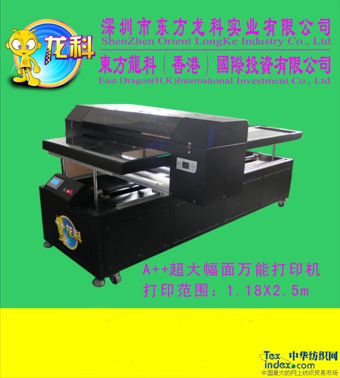 主營產(chǎn)品: 服裝萬能打印機,皮革萬能打印機,無紡布萬能打印機,個性禮品打印機,廣告標(biāo)牌打印機