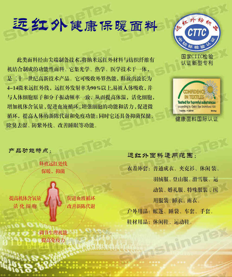 遠(yuǎn)紅外健康面料、遠(yuǎn)紅外復(fù)合面料----釋放遠(yuǎn)紅外線