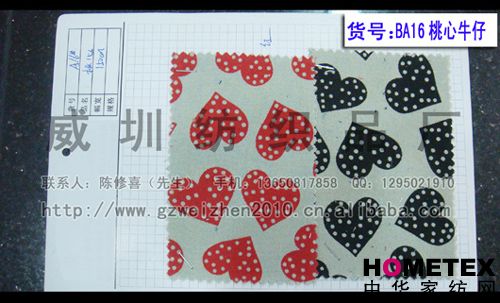 桃心牛仔面料 洗水牛仔面料 工藝印花洗水