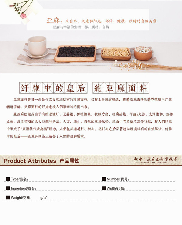 所屬分類 面料,麻面料