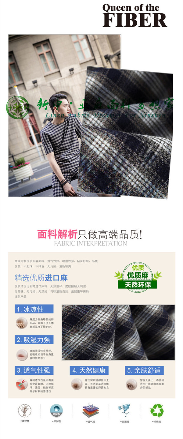 亞麻格子男裝簡潔 潮男出門必備亞麻面料