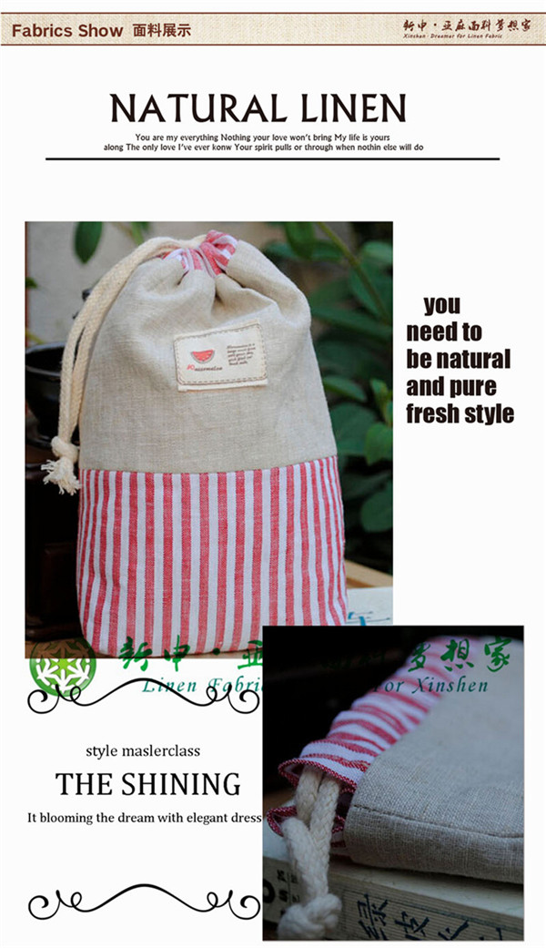 天然亞麻束口抽繩整理袋、水桶包布藝面料