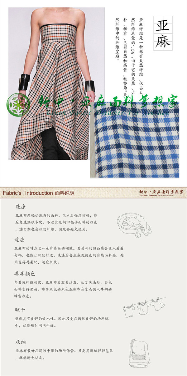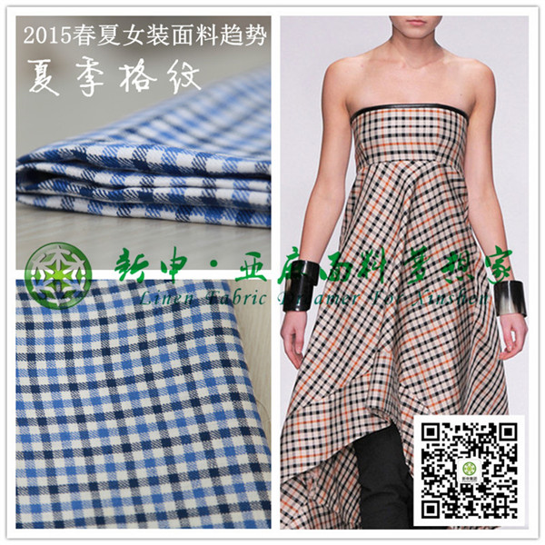 新款純亞麻夏季格紋款式女裝布藝面料