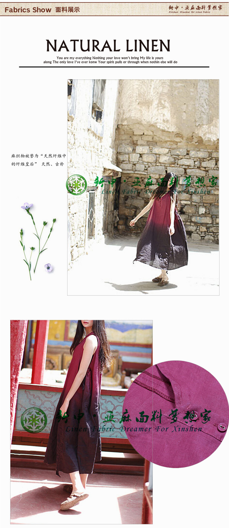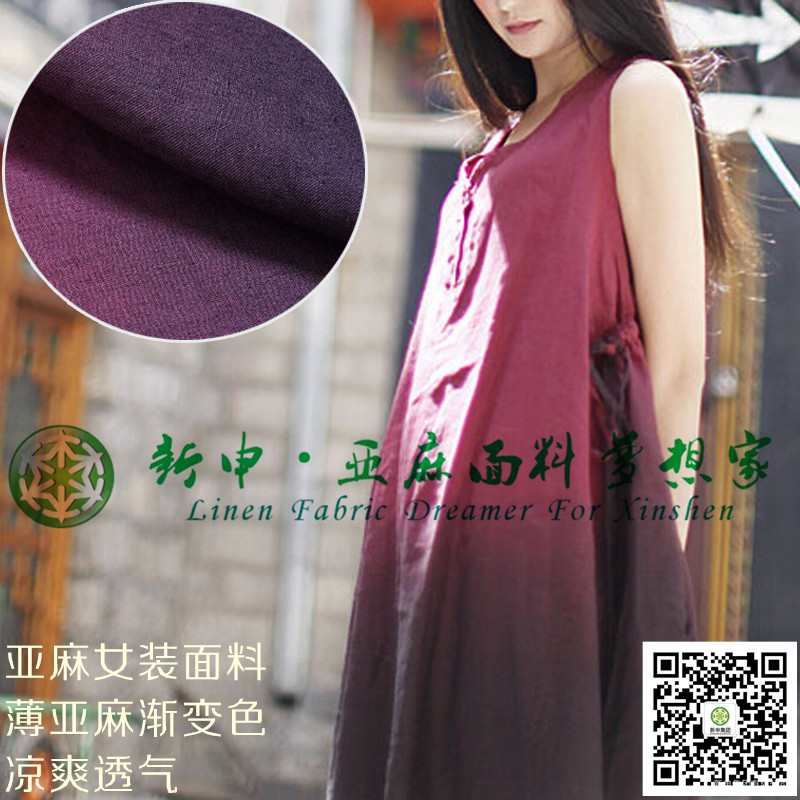 新款文藝氣質(zhì)漸變色純亞麻連衣裙面料