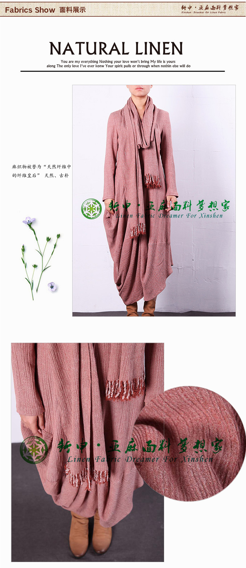關(guān)鍵字:亞麻面料,寬松舒適,自然親膚,時尚潮流,氣質(zhì)大方