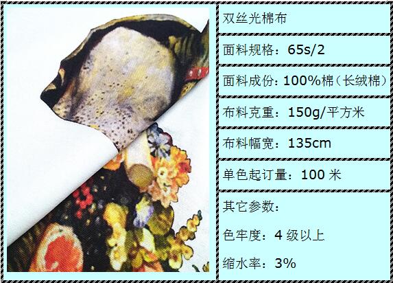 【65s/2雙絲光棉數(shù)碼印花布】