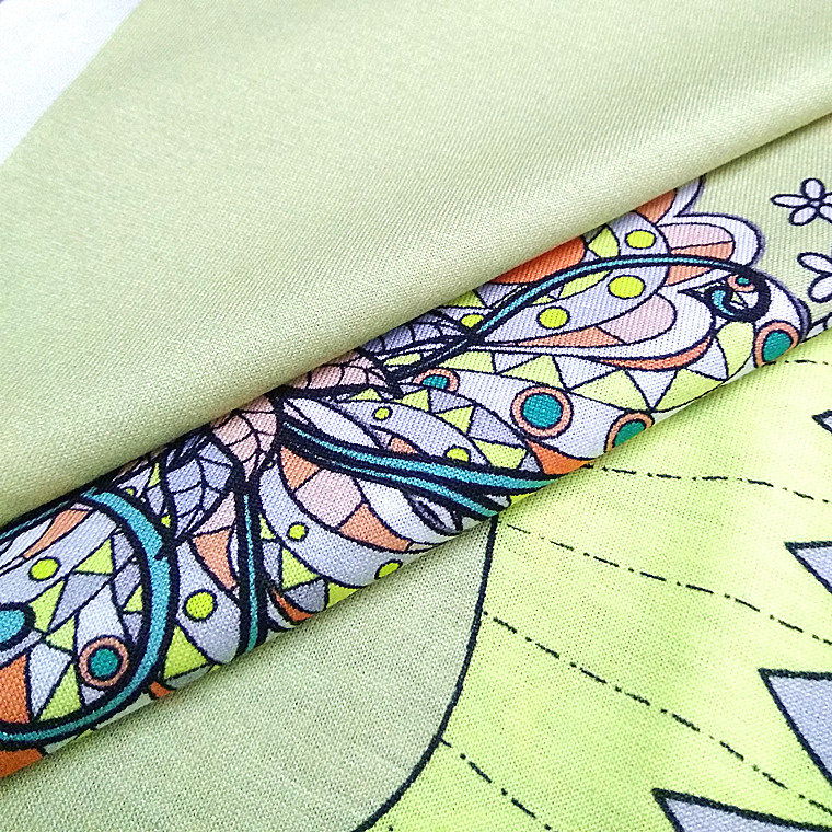 (6)、雙絲光棉印花面料色澤靚麗清晰,花型變化多樣,布面有很好的光澤,手感柔滑,印花所用的染料是環(huán)保染料,耐后絲光,不會(huì)沾色掉色。