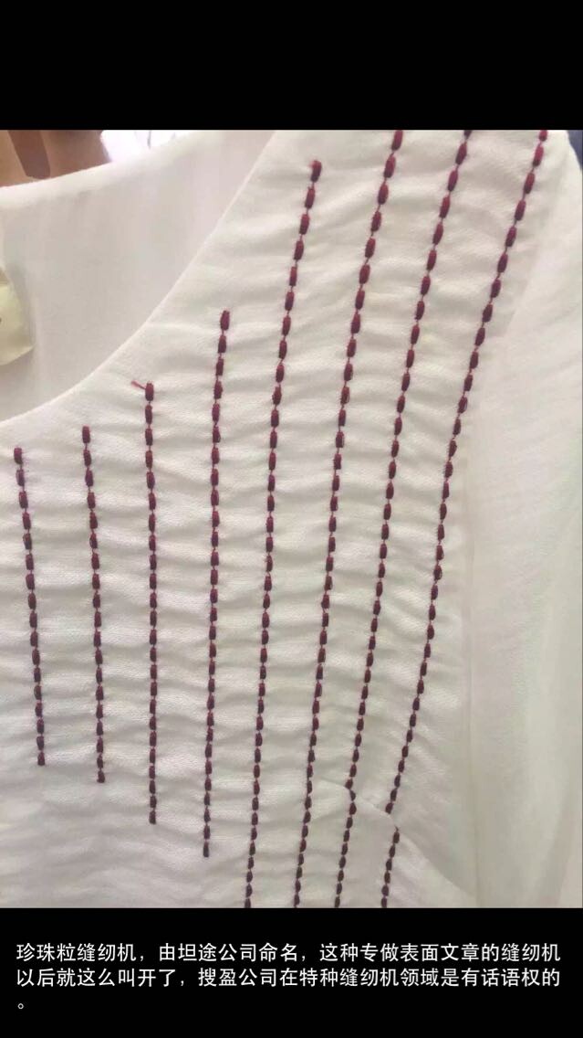 珍珠??p紉機(jī),又稱為米點(diǎn)縫紉機(jī),這是2015年的明星產(chǎn)品!在服裝產(chǎn)業(yè)形勢嚴(yán)峻的情況下,這種機(jī)器卻逆勢上揚(yáng),走出一波好的行情,這是一家國際品牌購買的機(jī)器,可見危機(jī)之中蘊(yùn)含著無限的商機(jī),坦途公司與商機(jī)同在!珍珠粒縫紉機(jī),由坦途公司命名,這種專做表面文章的縫紉機(jī)以后就這么叫開了,搜盈公司在特種縫紉機(jī)領(lǐng)域是有話語權(quán)的!
