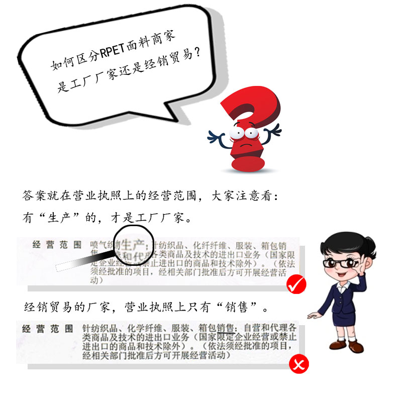 (4)我們會提供相關(guān)的認(rèn)證以及吊牌 ,證明這種面料是環(huán)保再生的產(chǎn)品。