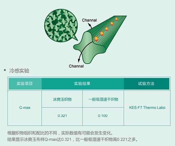 1、Icejade纖維內部本身是十字截面結構,能迅速吸濕排汗,保持肌膚干爽透氣。