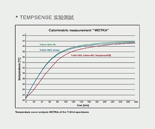 TEMPSENSE 纖維是通過(guò)微膠囊技術(shù)包覆相變調(diào)溫材料的一種功能性天然再生纖維,它不同于無(wú)機(jī)生命,具有“感知”及“知覺(jué)”,能以潛熱交換方式吸收貨釋放熱量,使紡織品處于人體最舒適的溫度范圍。