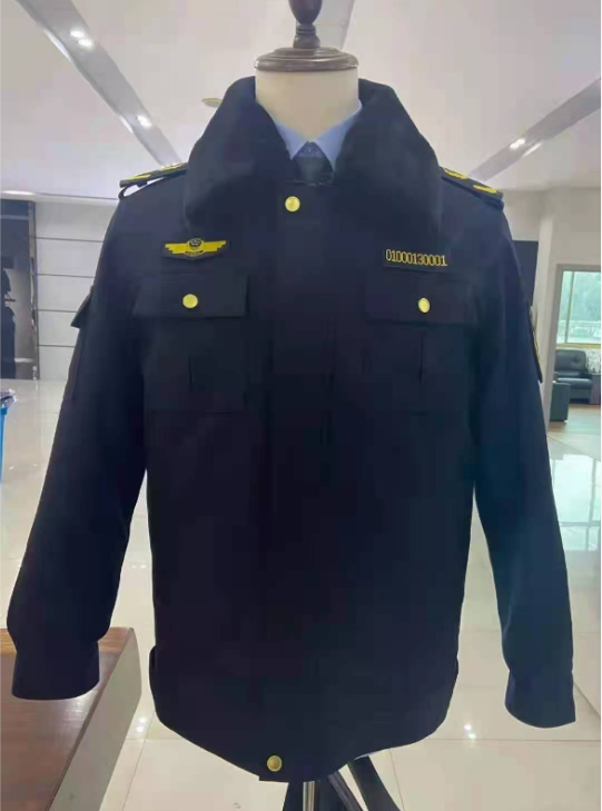 春秋服)修身款式設(shè)計(jì)剪裁,穿著威武、帥氣、大方。較小的領(lǐng)型設(shè)計(jì),更適合南方人的體型,袖口處有四料專用金屬扣,可佩戴武裝腰帶,男裝前胸設(shè)計(jì)大貼袋子,女士收腰公主線,適合春秋季執(zhí)勤和行政人員穿著