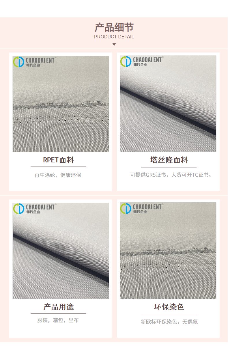 關(guān)鍵字:再生面料,牛津布面料,塔絲隆面料