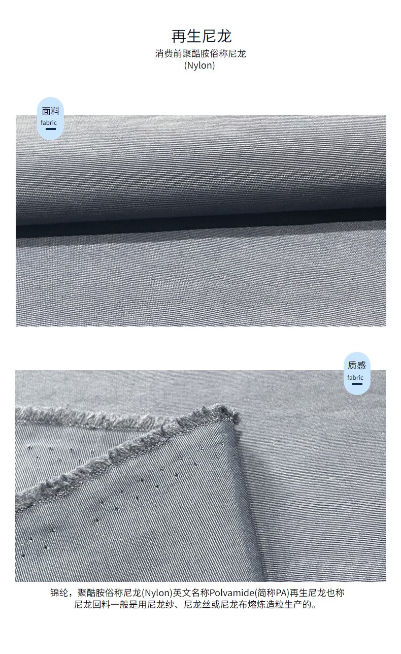 關(guān)鍵字:再生尼龍面料,消費(fèi)前面料,GRS認(rèn)證面料