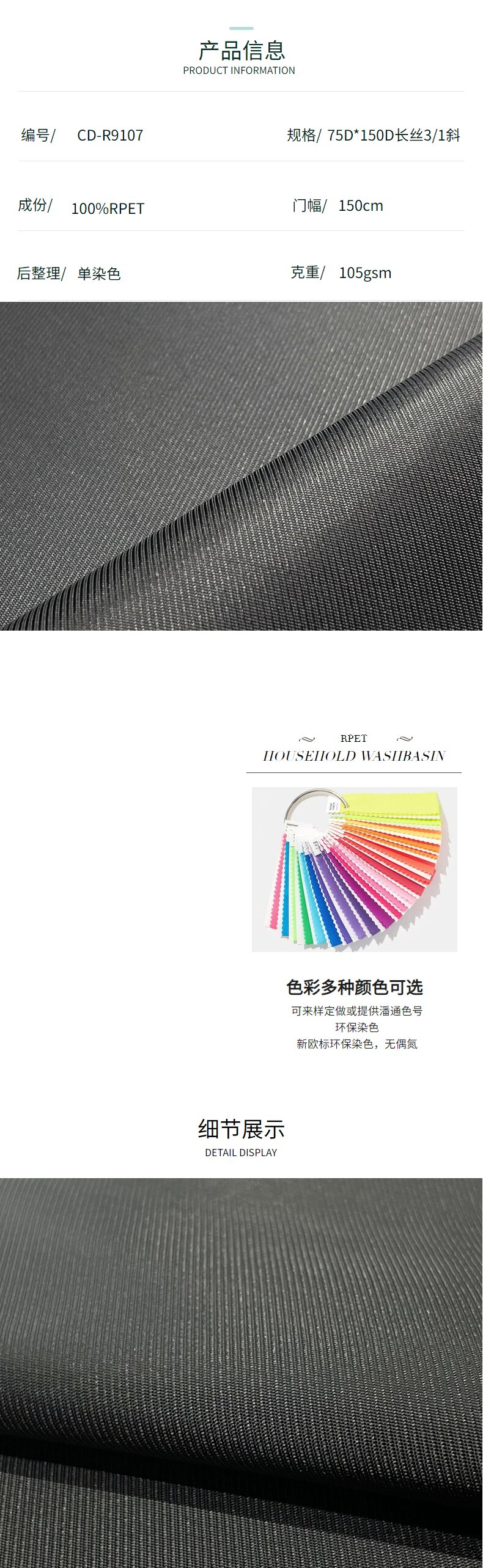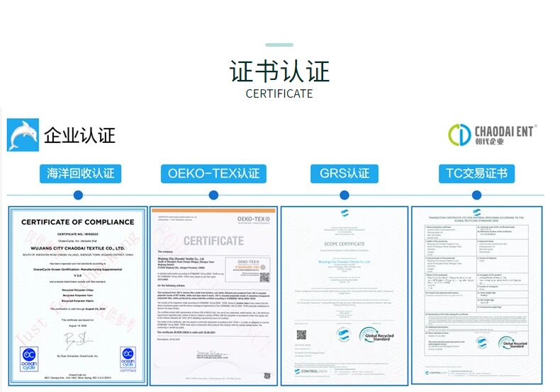 關(guān)鍵字:再生牛津布面料,再生滌綸,箱包面料,GRS認(rèn)證,長絲3/1斜面料