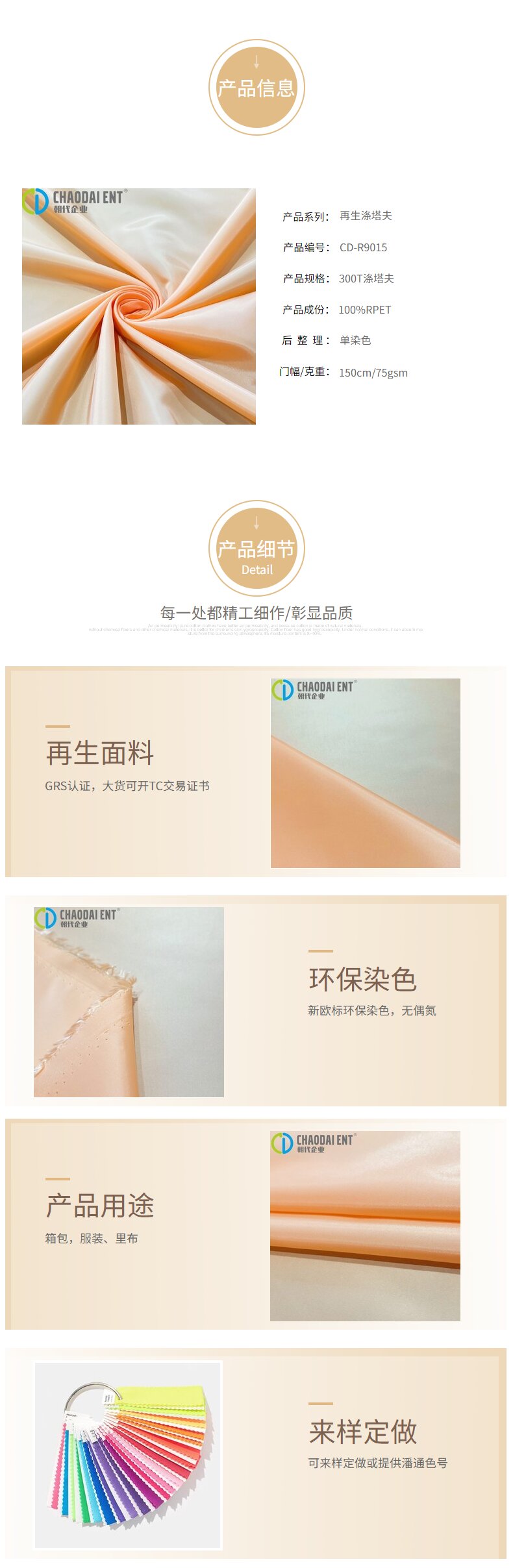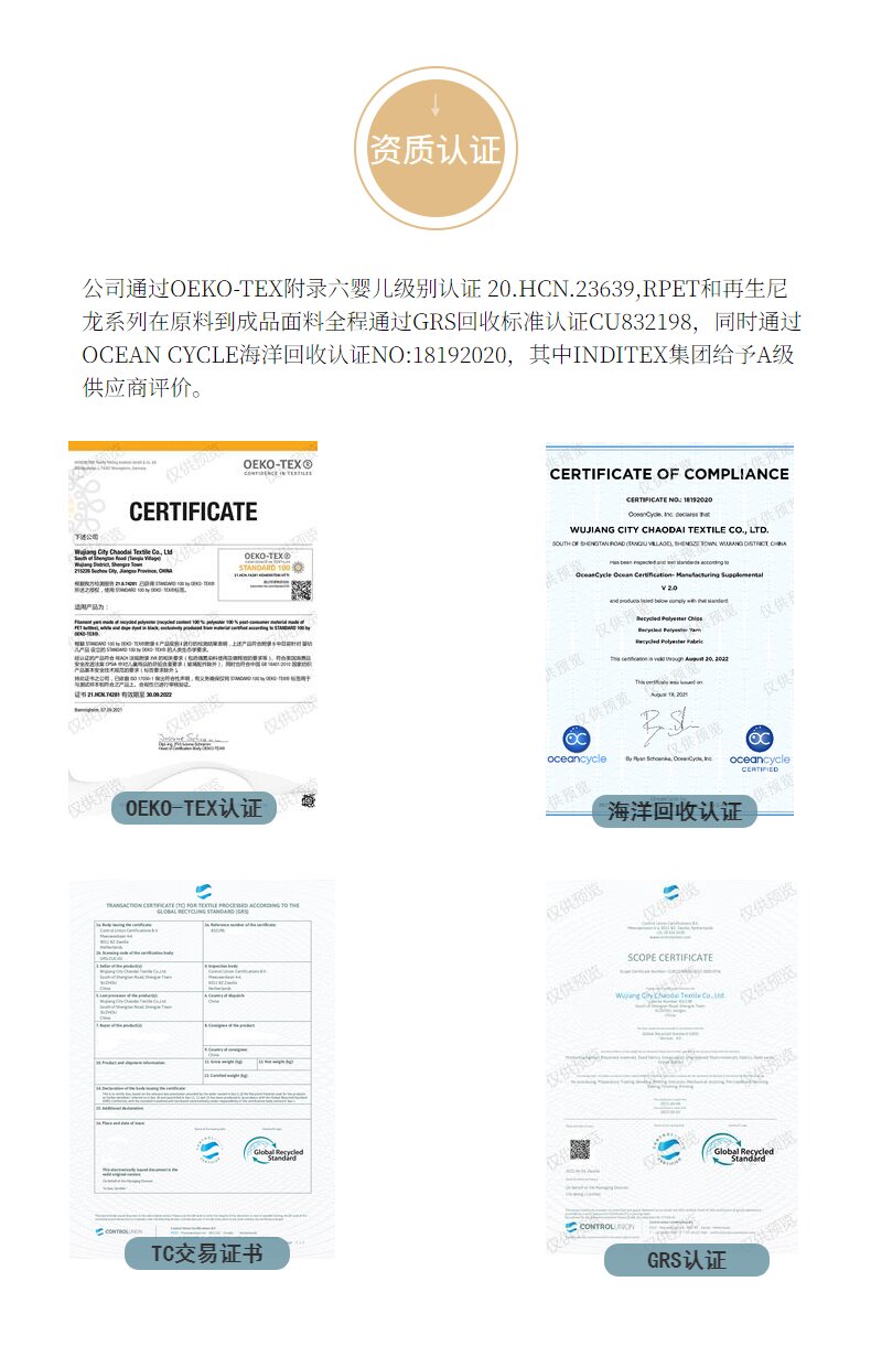 關鍵字:再生滌塔夫,再生滌綸,GRS認證面料