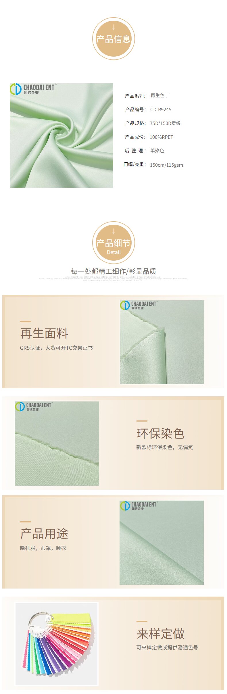 關(guān)鍵字:再生色丁,色丁貢緞面料,GRS認(rèn)證面料