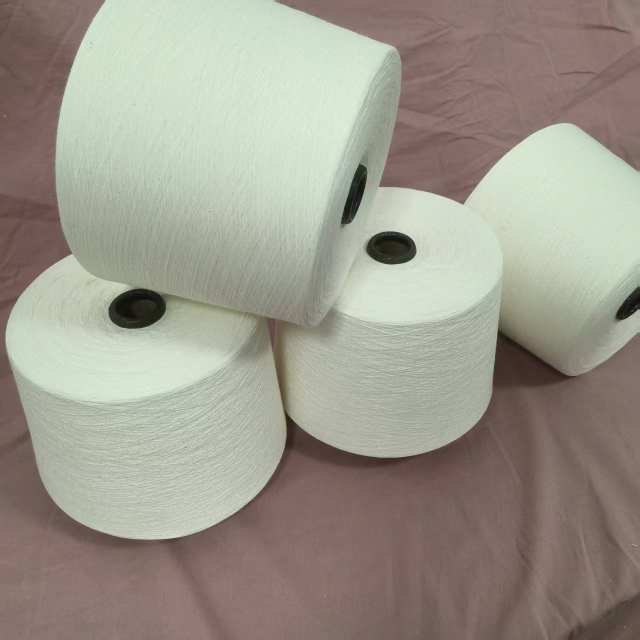 環(huán)錠紡滌綸紗:紗線結(jié)構(gòu)緊密、條干均勻、毛羽少,強度高,適用于高檔襯衫、西裝面料、優(yōu)質(zhì)家紡等。
