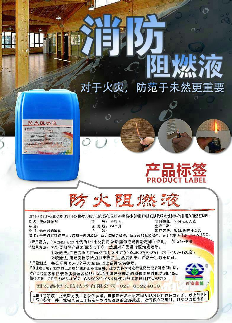 西安咸陽紡織品水基型阻燃劑。凡經(jīng)處理噴涂的物件能達(dá)到防火阻隔燃,降低阻止火焰?zhèn)鞑サ男阅?,是一種非常理想的防火阻燃產(chǎn)品??梢詮V泛應(yīng)用于各類天然纖維和人工合成纖維的紡織品,如棉布、棉麻織物、毛織物、紡織物、地毯、窗簾、床單、裝飾布以及飛機、輪船、汽車內(nèi)裝飾布等,也可以用于工業(yè)用途的牛皮紙、壁紙及可吸附本產(chǎn)品的易燃物。