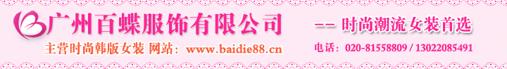 廣州百蝶服飾有限公司以韓版女裝批發(fā)為主要經(jīng)營模式,立足廣州面向全國的專業(yè)服裝生產(chǎn)批發(fā)經(jīng)銷商。長期以來與廣州、東莞等眾多服裝廠商及快遞公司有著良好的合作關系。在全國各地擁有大量的客戶群體,得到廣大服裝批發(fā)零售商以及眾多代理商的一致好評,在女裝批發(fā)零售業(yè)界有著良好的口碑和信譽。