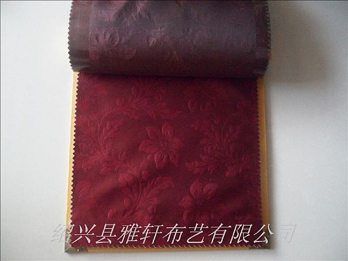 面料特點工藝:主布成分--經線A:75D/72F有光滌綸低彈絲,緯線:300D\96F滌綸低彈黑絲,面料工藝--遮光布軋花工藝.