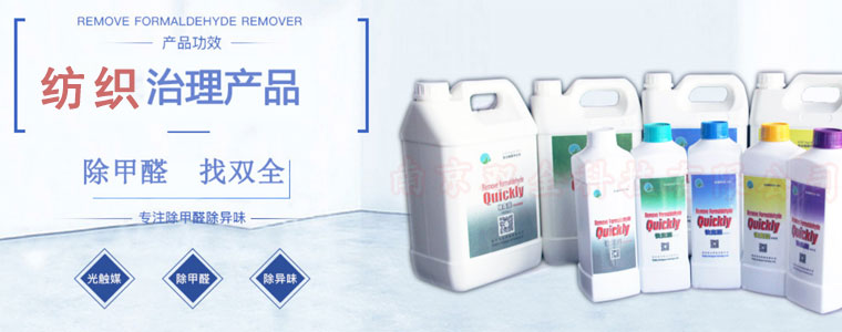 南京雙全科技有限公司厭煩中心的科研人員經(jīng)過近三年的努力,日前終于成功攻關(guān)解決紡織品甲醛超標(biāo)的難題,并在第一時間將紡織品甲醛清除系列產(chǎn)品sq-100,sq-586,sq-5861投放市場,投放市場的產(chǎn)品得到了紡織印染、整理企業(yè)的贊揚(yáng)。研發(fā)中心研制成功的系列產(chǎn)品,不僅可以直接添加到紡織印染助劑中使用,而且可以添加到水及焙烘工藝之中,徹底解決紡織面料存在的甲醛超標(biāo)難題,而且不改變紡織印染整理工藝,成本低,效率高,經(jīng)其處理后紡織品的甲醛釋放量完全可以達(dá)到國際國內(nèi)標(biāo)準(zhǔn),可使甲醛釋放量降到10ppm,甚至降到0,這項新產(chǎn)品及新技術(shù)的誕生,必將為解決我國紡織品面臨的出口技術(shù)壁壘,保障廣大消費(fèi)者的身體健康作出應(yīng)有的貢獻(xiàn)。公司2002年成立至今,解決的眾多紡織面料廠家服裝廠家的甲醛超標(biāo)問題。