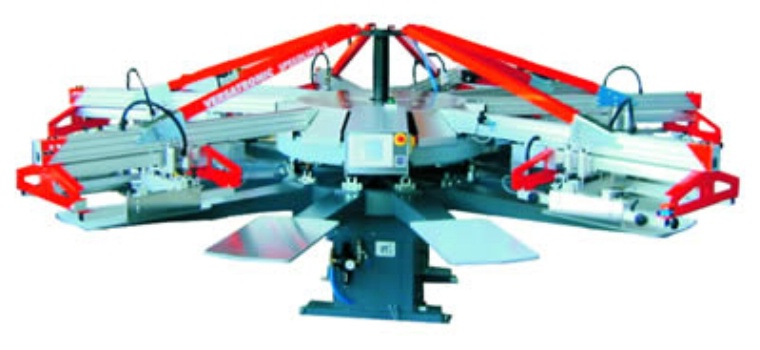 3、經(jīng)霸經(jīng)濟(jì)型全自動紡織印花機(jī):最大印花面積:400×500mm,工位:6~12個(gè),印花顏色:1~11種;