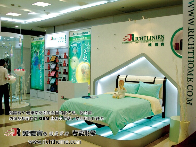 公司紡織品部秉承公司追求健康、環(huán)保產(chǎn)品品質(zhì)的理念,自公司成立以來,一直致力于“為廣大消費者營造高品質(zhì)的健康家居環(huán)境”——健康家紡的研究。公司和德國合作開發(fā)的“RICHTLINIEN(瑞特能)纖維養(yǎng)生技術”,是現(xiàn)代預防醫(yī)學最新成果與高分子科技的完美結合,它涉及到醫(yī)學、生物工程、高分子技術等多學科、多領域的最新科研成果,它是人類健康史上新的里程碑!其技術功效已通過國際權威機構“Intertek Labtest”抑菌鑒定。