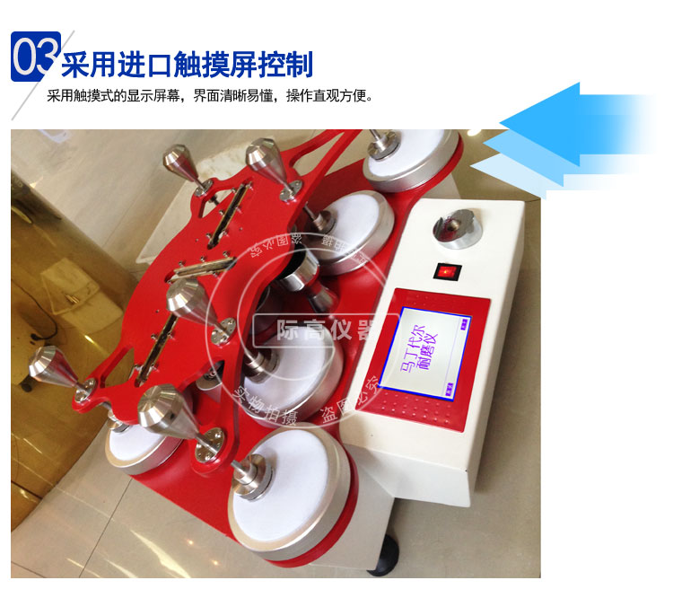 馬丁代爾耐磨儀是吸取國內(nèi)、外同類儀器優(yōu)點(diǎn)設(shè)計而成,其外形美觀大方、采用觸摸式的顯示屏幕,界面易懂,操作簡便,微機(jī)系統(tǒng)采用兩種計數(shù)方式,直觀大方,設(shè)定方便,九個工位同時試驗,提高試驗效率。儀器還設(shè)有二種李沙茹(Lissajous)24mm×24mm、60.5mm×60.5mm運(yùn)動軌跡和多種配套附件,能適應(yīng)多種試驗方法標(biāo)準(zhǔn)。